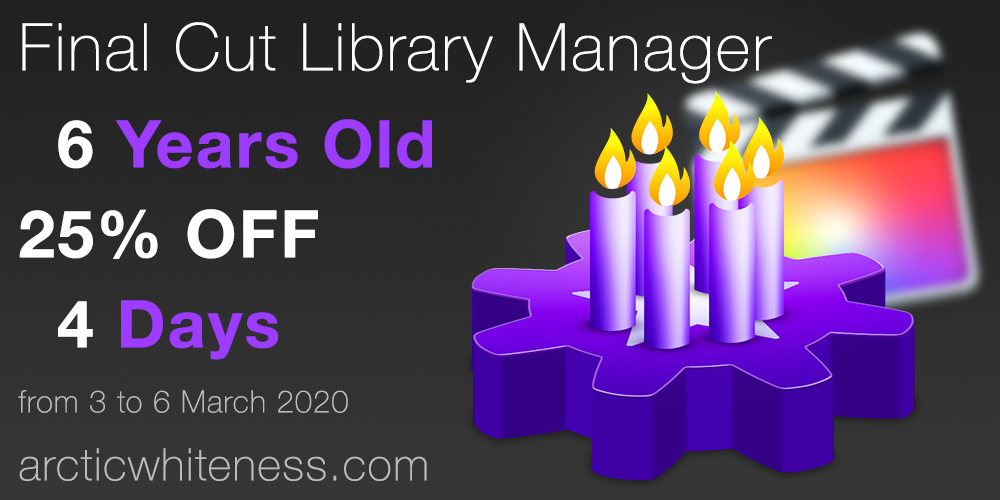 It's now been six years that Final Cut Library Manager has been helping you to both manage your ever-growing collection of libraries, and to recover precious hard drive space by cleaning them.
